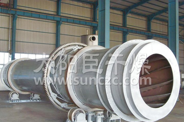 固废煅烧窑工作原理 湿物料从干燥机一端投入后,在内筒均布的抄板器翻动下,物料在干燥器内均匀分布与分散,并与并···