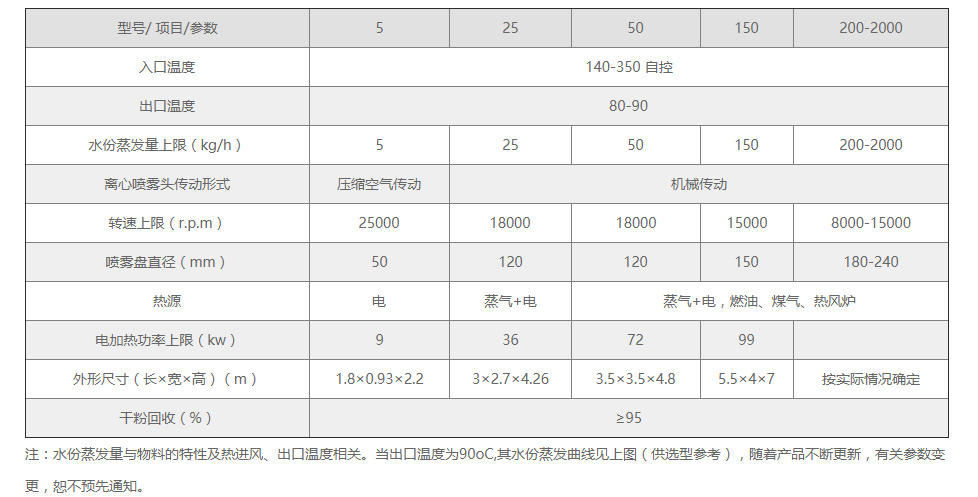 ◎干燥速度快,料液经雾化后表面积大大增加,在热风气流中,瞬间就可蒸发95%-98%的水份,完成干燥时间仅需数秒钟,特别适用于热敏性物料的干燥。
