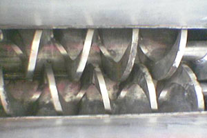 空心轴上密集排列着楔型中空浆叶,热介质经空心轴流经浆叶。单位容积内传热面积很大,热介质温度从-40℃到320℃,可以是水蒸汽,也可以是液体型:如热水、导热油等。间接传导加热,没有携带空气带走热量,热量均用来加热物料。热量损失仅为通过器体保温层向环境的散热。楔型浆叶传热自清洁功能。物料颗粒与楔型面的相对运动产生洗刷作用,能够洗刷掉楔型面上附着物料,使运转中一直保持着清洁的传热面。浆叶干燥机的壳体为Ω型,壳体内一般安排二到四根空心搅拌轴。壳体有密封端盖与上盖,防止物料粉尘外泄而充分发挥作用。